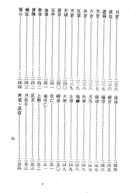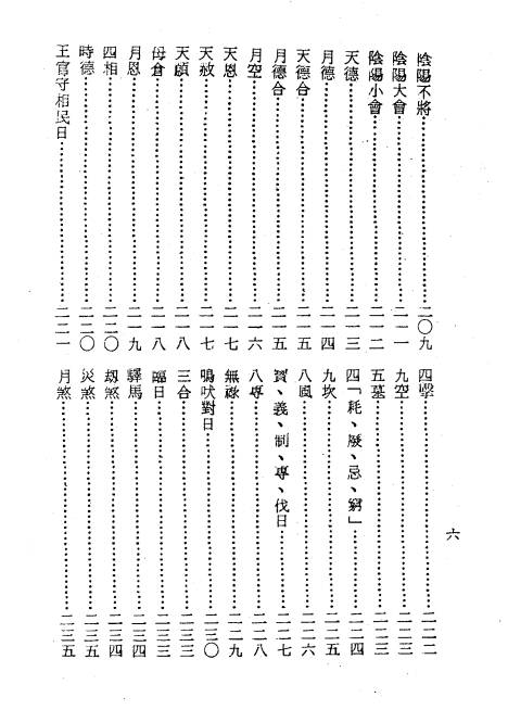 - 其他择吉要素:四大空亡、空亡、元辰、亡神、劫煞、羊刃、四大空亡、空亡、十二神煞、年神、日神、月神、时神、飞地官符、飞大煞、月建、大小月建、丙丁燭火、月遊火、岁破、大将军、奏书、博士、力士、蠲室、蠲宫、丧门、吊客、群魄、白虎、官符、黄幡、豹尾、病符、死符、劫煞、灾煞、岁煞、伏兵、五兵幽囹、大煞、飞廉、金神、五鬼、破财五鬼、太岁出游、日遊神、二十四凶日、偏神表等