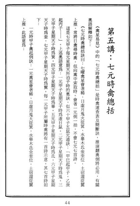 5. 七元时禽总括(七元甲子时禽起例诀 + 吉凶断法)