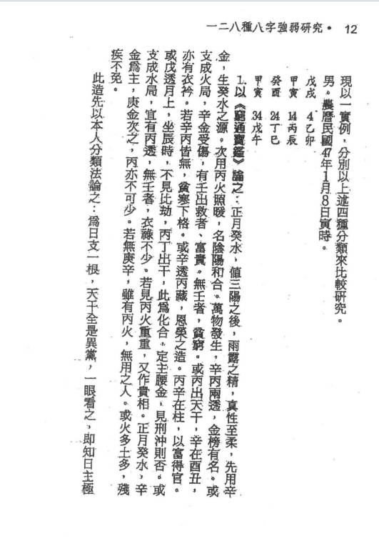 第二章 總論一二八種八字之強弱研究