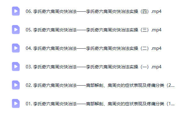 百度网盘分享:李文臣弟子班《李氏奇穴肩周炎快治法》视频课6集 课程截图 课程截图 课程截图 课程截图 本站为纯分享资源站点,仅提供一个观摩学习的环境,网站内所有资源仅供学习交流之用,版权均归原作者所有,本站将不对任何资源负法律责任。若无意中侵犯到您的版权利益,请来信联系我们,我们会在收到信息后会尽快给予处理!