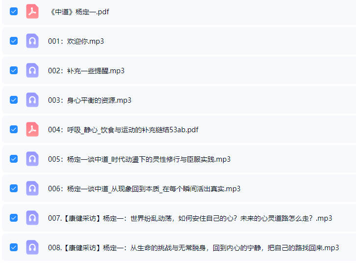百度网盘分享:杨定一博士2025年【中道,中道到底】全球线上靜心音频课200多节+配套文档