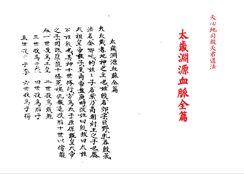 内容为殷天君血脉源流至秘,诸多殷天君秘讳,殷天君秘符等等