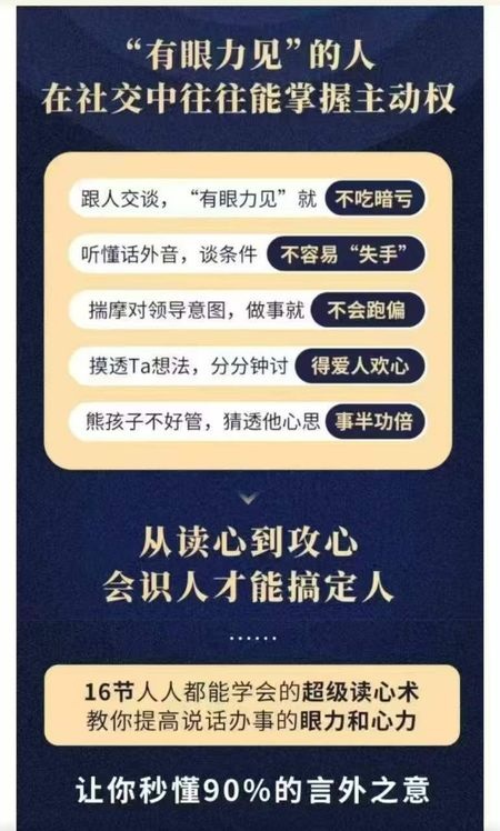 → 职场人:快速看透同事/客户心理,沟通谈判更从容。
