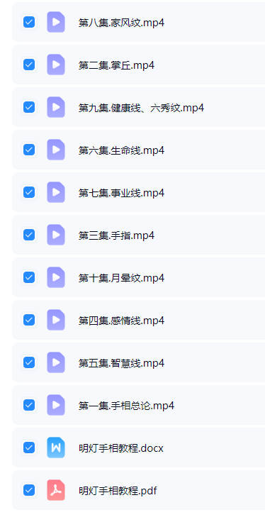 百度网盘分享:《明灯手相教程第二期》视频+文档,详细讲解