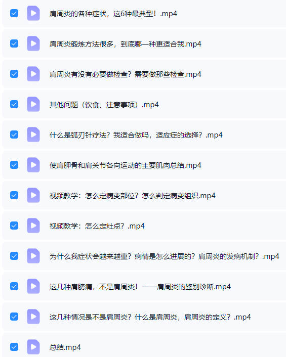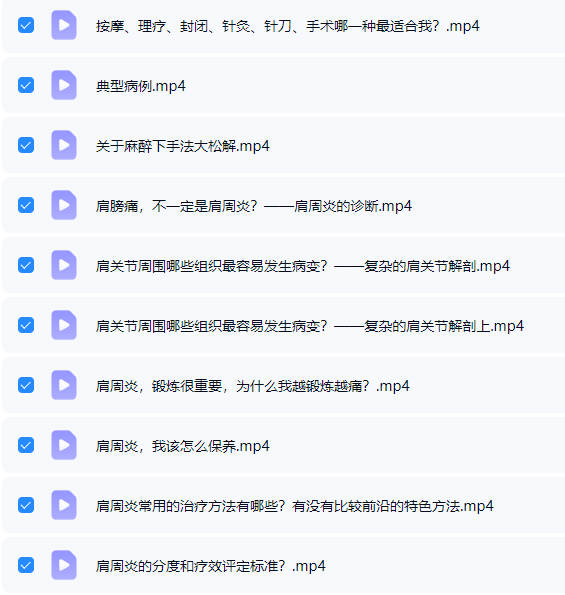 百度网盘分享:王学昌《治疗肩周炎,跟我学》视频课22集