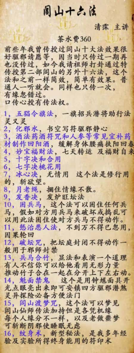 我请祖师打卦通过特传授闾山十六法,这个法简单有效果。普通人一听就会。同样也只传一次,有缘忽错过。