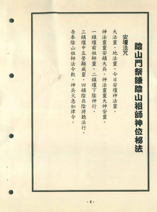 阴山门的法坛需供奉阴山祖师牌位,及阴兵旗一支,再加上五煞神旗,即可施法。