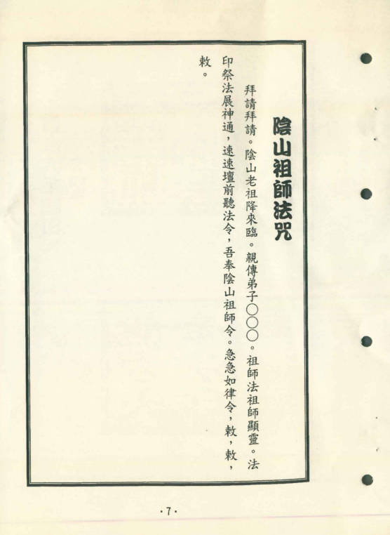 (一)阴山祖师印:用于消灾祈福。