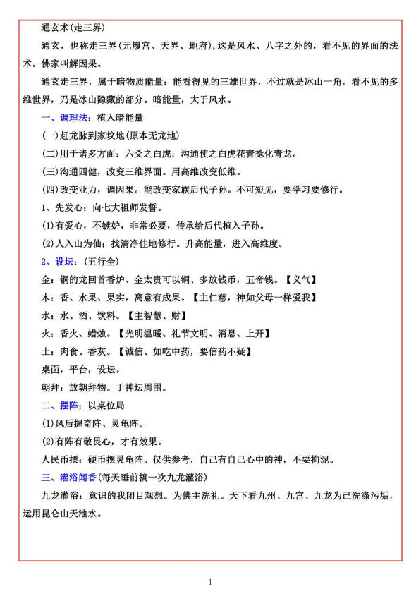 通玄,也称走三界(元履宫,天界,地府),这是风水,八字之外的,看不见的界面的法术。佛家叫解因果