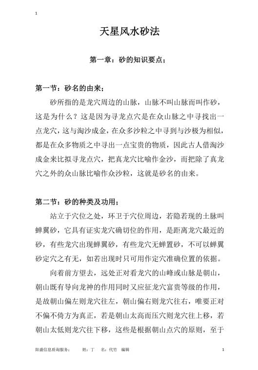 百度网盘分享:天星风水第十代秘传弟子《天星龙穴受教版》《天星风水砂法》72页+56页.两册PDF电子版
