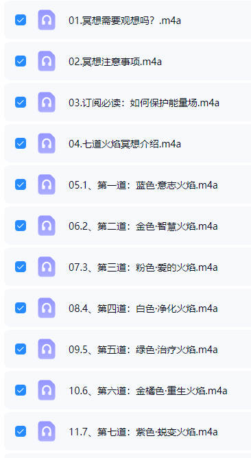 百度网盘分享:于蔓【觉醒·冥想篇】七道神圣火焰(能量场整体净化)11节音频 本冥想课程续连七天,主要有七道光,每天中集精力,接引从源涌头入星的球七道光中其的中一道光射,会对净化与升提能量非有常帮助。 用这个形式将七光道一起运作,以深最刻的方式,将助帮你一生的过程中,平衡你的一每道脉轮,扩你张人生的意识,并带给你内更在大的定稳与恩典。 本站为纯分享资源站点,仅提供一个观摩学习的环境,网站内所有资源仅供学习交流之用,版权均归原作者所有,本站将不对任何资源负法律责任。若无意中侵犯到您的版权利益,请来信联系我们,我们会在收到信息后会尽快给予处理!