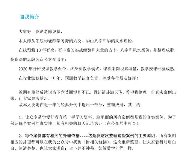 百度网盘分享:《老陈说易卦例求真》156页.PDF电子版 老陈十年看卦手记,手把手教你看卦,十年网络实战经验之谈,带你感受六爻魅力~ 温馨提示:你目前看到的图片是截屏图片,原资料清晰度会更高 部分内容截图 部分内容截图 部分内容截图 部分内容截图 部分内容截图 部分内容截图 部分内容截图 部分内容截图 部分内容截图 本站为纯分享资源站点,仅提供一个观摩学习的环境,网站内所有资源仅供学习交流之用,版权均归原作者所有,本站将不对任何资源负法律责任。若无意中侵犯到您的版权利益,请来信联系我们,我们会在收到信息后会尽快给予处理!