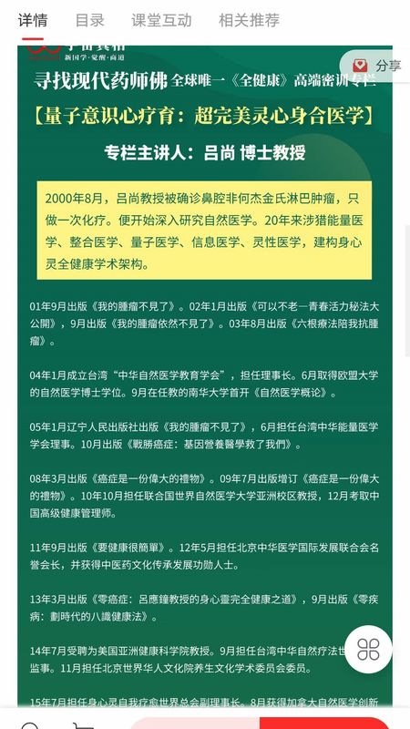 百度网盘分享:【找寻现代药师佛】全球唯一《全健康》高端密训专栏 视频7集