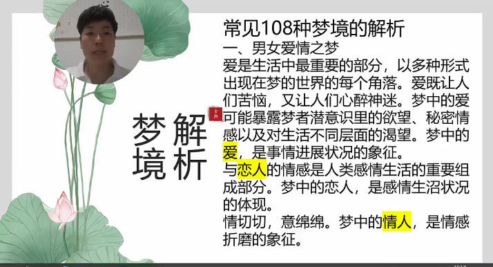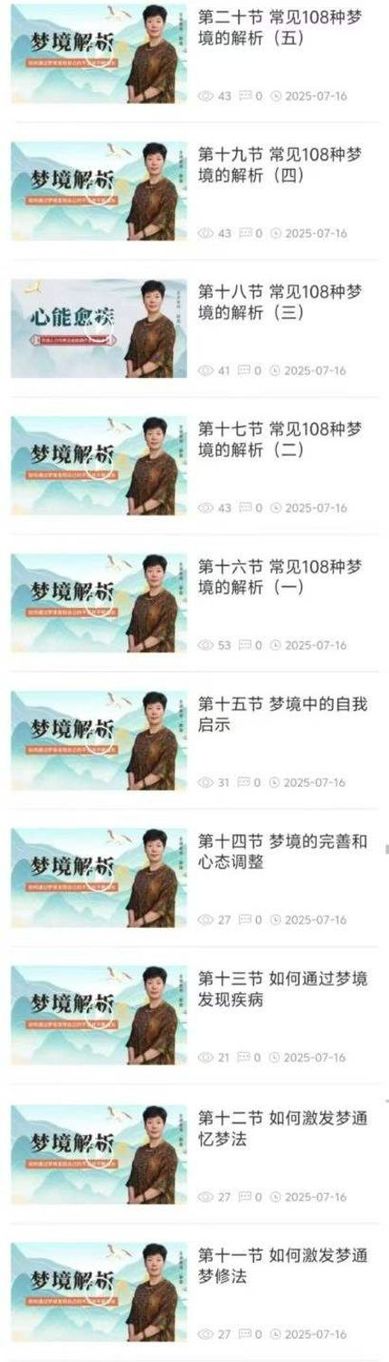 百度网盘分享:如是禅说《梦境解析》视频课30集 如何通过梦境发现自己的不足并不断成长 课程截图 课程截图 课程截图 课程截图 本站为纯分享资源站点,仅提供一个观摩学习的环境,网站内所有资源仅供学习交流之用,版权均归原作者所有,本站将不对任何资源负法律责任。若无意中侵犯到您的版权利益,请来信联系我们,我们会在收到信息后会尽快给予处理!
