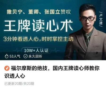 百度网盘分享:卢建文《福尔摩斯的绝技 国内王牌读心师教你识透人心》视频20集