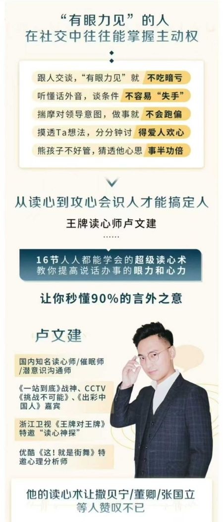 从读心到攻心会识人才能搞定人王牌读心师卢文建16节人人都能学会的超级读心术教你提高说话办事的眼力和心力让你秒懂90%的言外之意