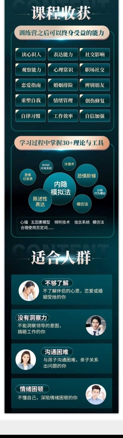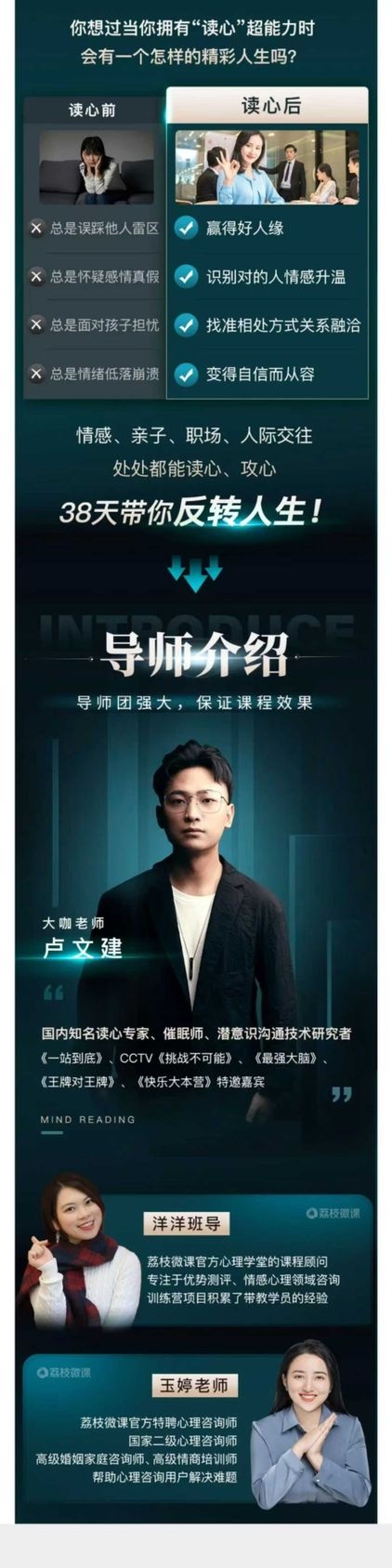 百度网盘分享:卢文建《38天读心识人训练营 一眼识人 一秒读心》50集视频,课时约28小时 读心识人让你赢得人心 成为拥有超强人气的人际关系大赢家 本站为纯分享资源站点,仅提供一个观摩学习的环境,网站内所有资源仅供学习交流之用,版权均归原作者所有,本站将不对任何资源负法律责任。若无意中侵犯到您的版权利益,请来信联系我们,我们会在收到信息后会尽快给予处理!