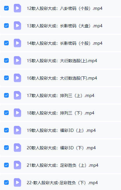 百度网盘分享:散人老师 六爻《资财丰—股彩大成终极班》视频 22集 (股票16节+彩票6节),约22小时