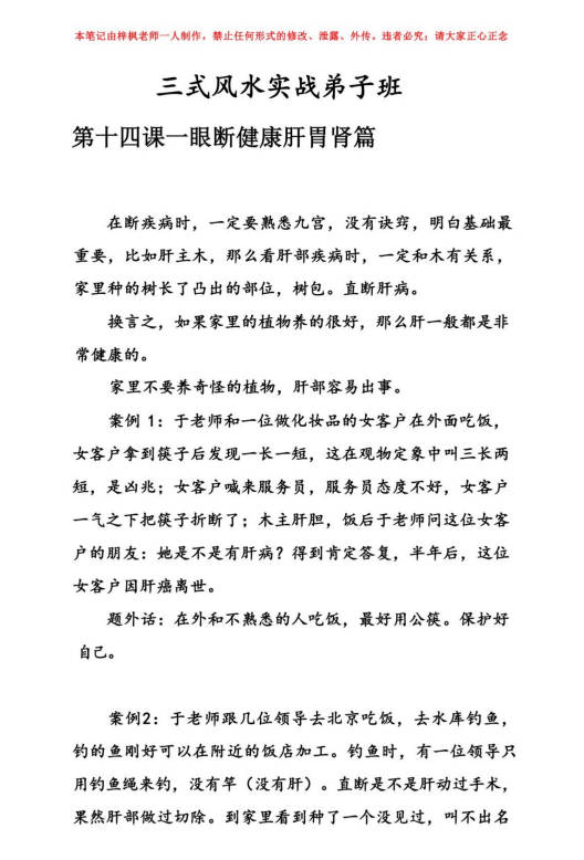 12三式风水弟子班第12课:笔记一眼断健康心脏篇199