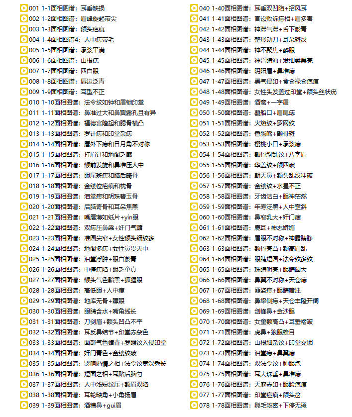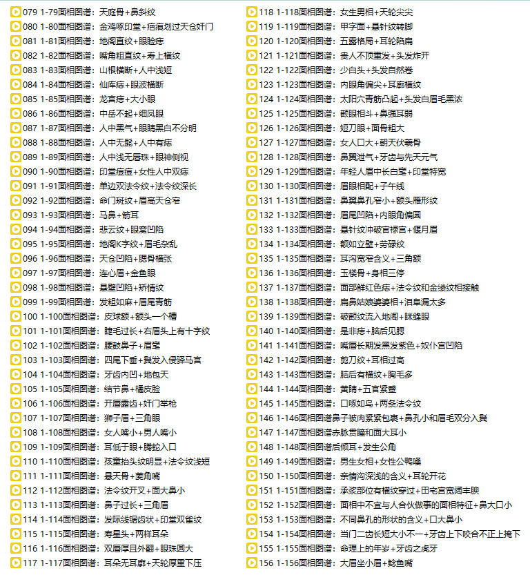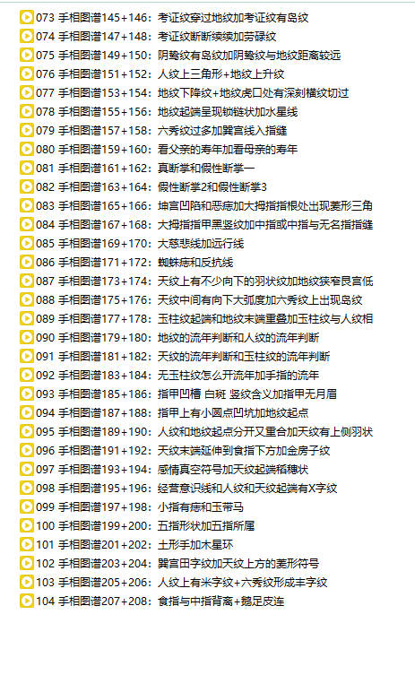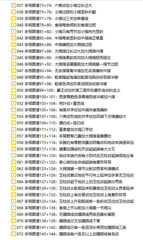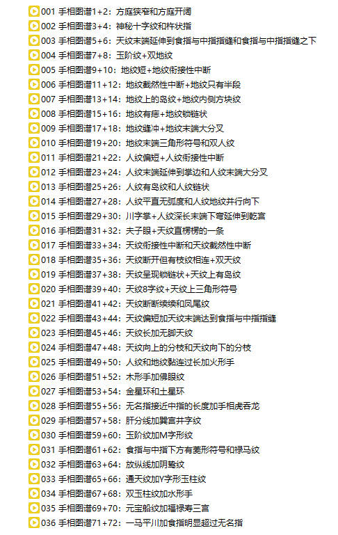 百度网盘分享:B站几万粉丝知名up主!知相知命《手相图谱222例+面相图谱304例》共260集视频课 命由己造,相由心生,虽不能完成改变,亦能有所改善。知相能指迷而越险,能解惑而为祥;其道非轻,其技术非小;人定胜天,莫此为最。 非常踏实和诚恳的老师,从业13年左右的命理师傅,会手面相八字,虽无祖传师承,一直对这方面比较钻研,也咨询过很多的案例,一点点积累面相经验! 课程截图 课程截图 本站为纯分享资源站点,仅提供一个观摩学习的环境,网站内所有资源仅供学习交流之用,版权均归原作者所有,本站将不对任何资源负法律责任。若无意中侵犯到您的版权利益,请来信联系我们,我们会在收到信息后会尽快给予处理!