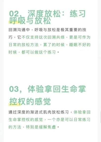 研究表明,75%的人能够回溯前世记忆。通过前世回溯释放和疗愈身心灵,比如创伤、恐惧、焦虑、悲伤等各类情绪,以及洞悉灵魂旅程,协助完成此生的灵魂使命,走在更高更快的生命进程中。《前世今生》的作者维斯博士曾提及,很多慢性病和前世创伤有关。