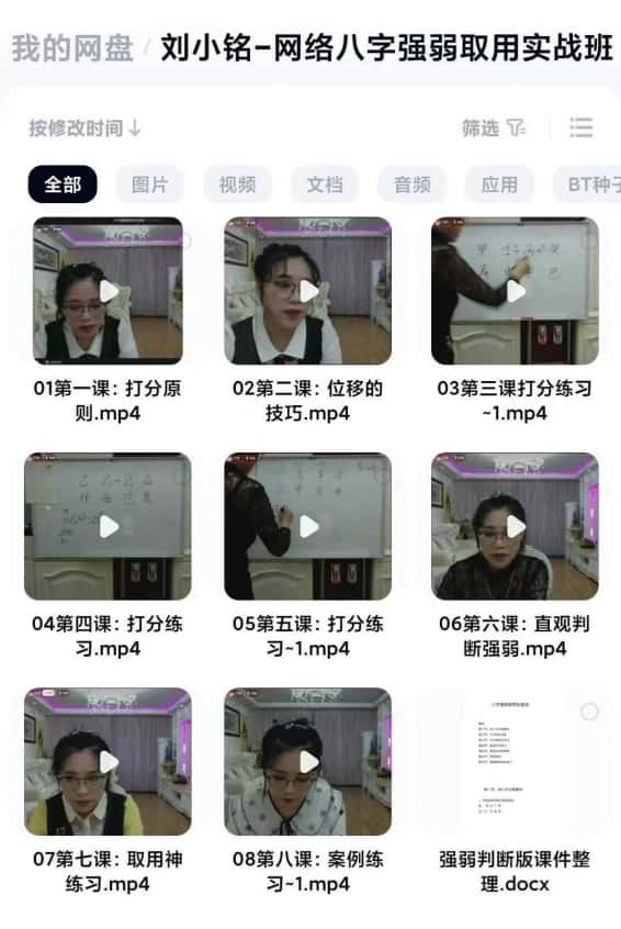 百度网盘分享: 刘小铭《网络八字强弱取用实战班》 8集视频课+课件