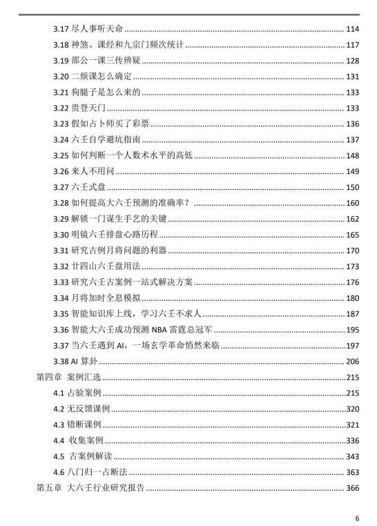 简介:本书主要包括涉害法真诀、六壬杂谈、实战案例汇选和六壬行业研究报告四部分内容,共17万余字,400余页,是我自2022年以来学壬成果的全面总结升级。涉害法真诀,收录了我对涉害法的突破性研究,提出了涉出害,结束了大六壬涉害法历史上千年争议。六壬杂谈,收录了大六壬明镜公众号自2022年以来的所有精选文章。案例汇选,包括70个占验案例、9个错断案例、1个无反馈案例、1个八门归一法示例、7个收集案例和15个古案例解读,共103个案例。六壬行业研究报告,包括对大六壬历史渊源、核心理论体系、现代应用、市场格局、行业参与者及未来发展趋势的深入研究。