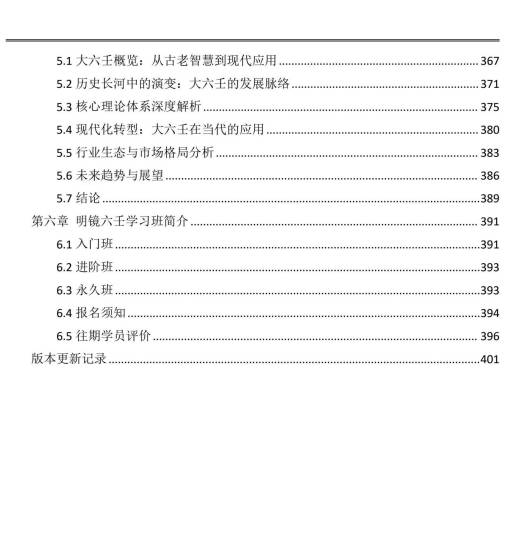 【内容大纲】 1. 大六壬基础:六壬简介、核心概念与学习方法 2. 核心技法:涉害法真诀、大六壬核心技法详解 3. 学习杂谈:六壬学习规律、误区、进阶技巧与行业认知 4. 实战应用:各类占验案例、错课分析、古案例解读与实战断法 5. 行业与发展:大六壬行业研究、现代化应用与未来趋势 6. 补充内容:学习班介绍、版本更新记录