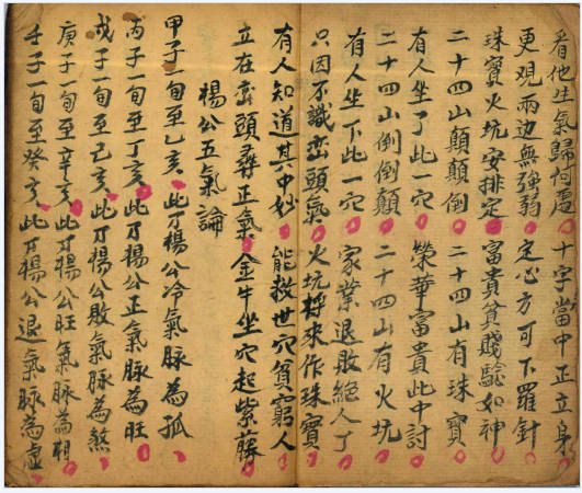 内有讲杨公五气论,二十四山火坑神断,验新旧坟断,精微玄机,透地卦式,二十八宿四吉宝照式,阴阳遁起节歌,奇门遁甲式,六十透地龙即五干气吉凶秘决,一卦管三山,六爻无子孙驿马山,地盘作用,分合泥水断,天盘缝针式等,71筒子页。142单页。