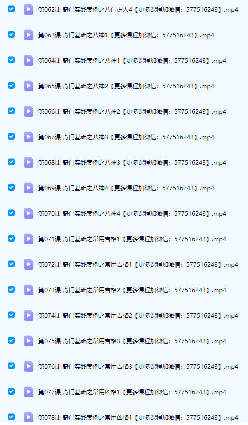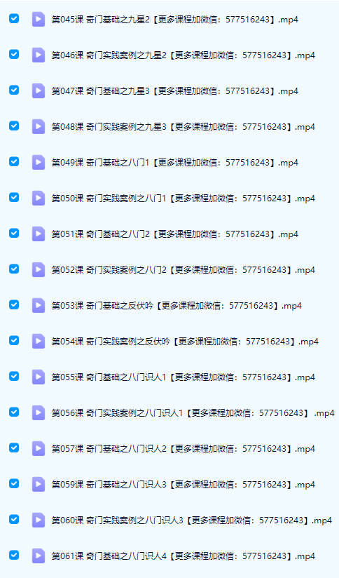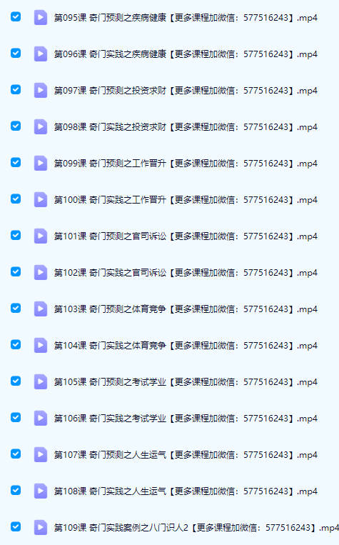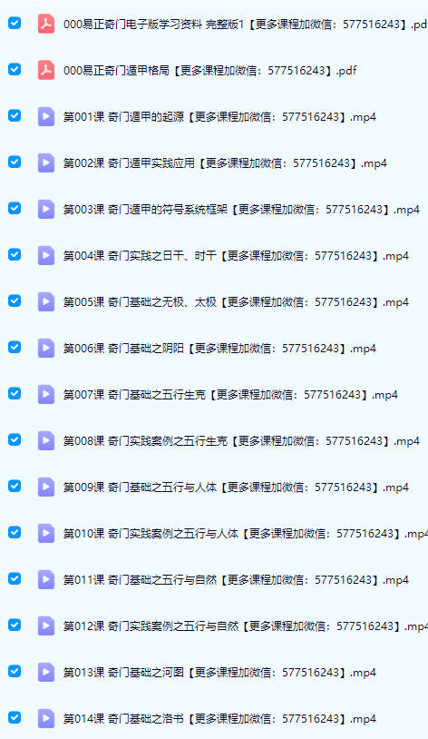 易正零基础学奇门入门到精通高清视频108课,易正老师教学讲解带字幕,送易正奇门电子教材高清完整版324页和易 正格局文档7页,特别适合初学者。 易正老师的奇门遁甲课程从起源到入门基础,到众多案例讲解,内容比较多,适合零基础学习奇门遁甲的朋友。 本站为纯分享资源站点,仅提供一个观摩学习的环境,网站内所有资源仅供学习交流之用,版权均归原作者所有,本站将不对任何资源负法律责任。若无意中侵犯到您的版权利益,请来信联系我们,我们会在收到信息后会尽快给予处理!