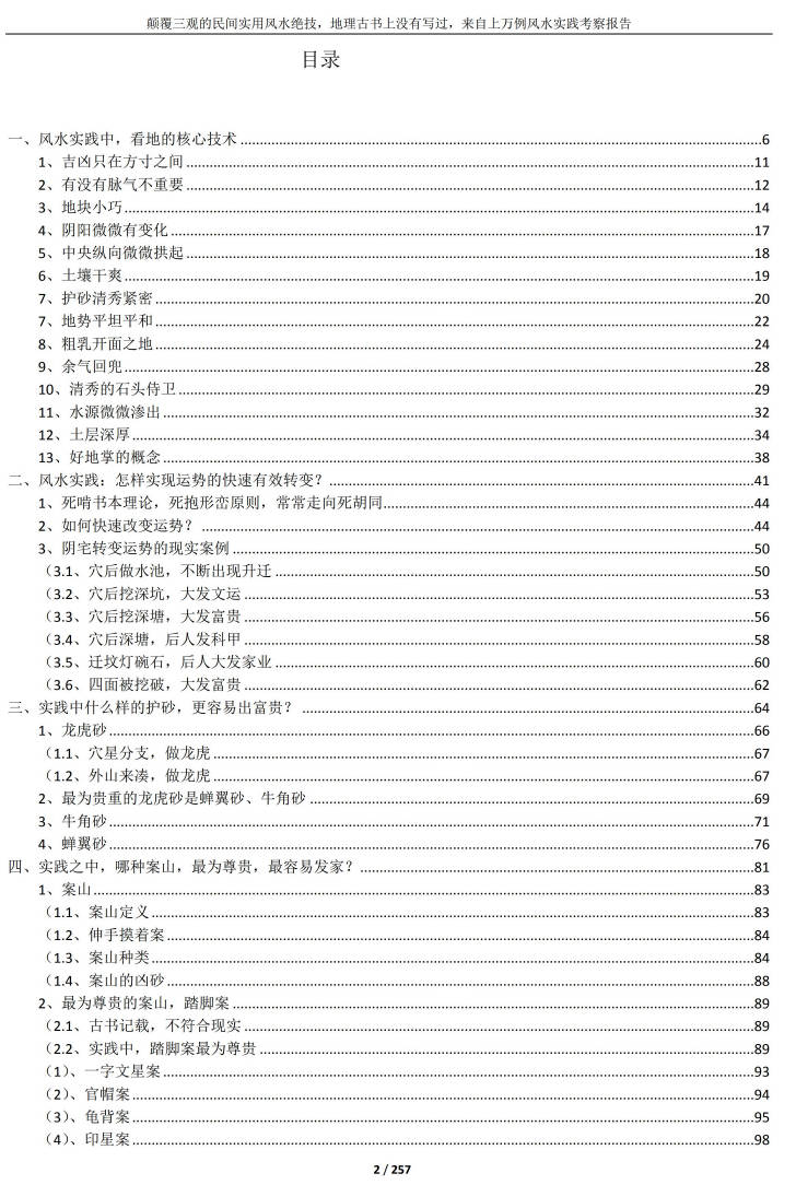 这是一本绝对颠覆你三观的民间实用风水绝技,这本书所讲的内容在任何古书上都看不到,这本书的内容来自线下实际考察一万多个真实风水案例的总结,现实中出现亿万富翁的阴阳宅有什么特点?现实中出富贵的莹地到底有什么特点?花了那么多代价请的名师为什么反而败家了?有什么方法能够快速转运?什么样的龙虎最容易出官贵?什么样的案山最容易发富贵?什么的水最为尊贵?发的最快?用什么方法才能知道此坟发不发?老百姓验证过的民间有效的方法是什么?以上内容都有揭密,固守传统思维的人不要阅读,死读书本的,不要购买此书,绝对好书