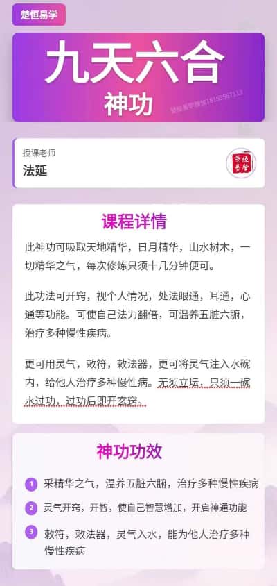 百度网盘分享:楚恒易学-法延老师【九天六合神功】一集视频+课件