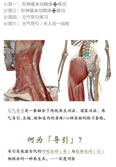 元气导引是一套融合了传统养生功法、道家功法、养气导引、太极、瑜伽在内的身体/心神层面的练习套路。