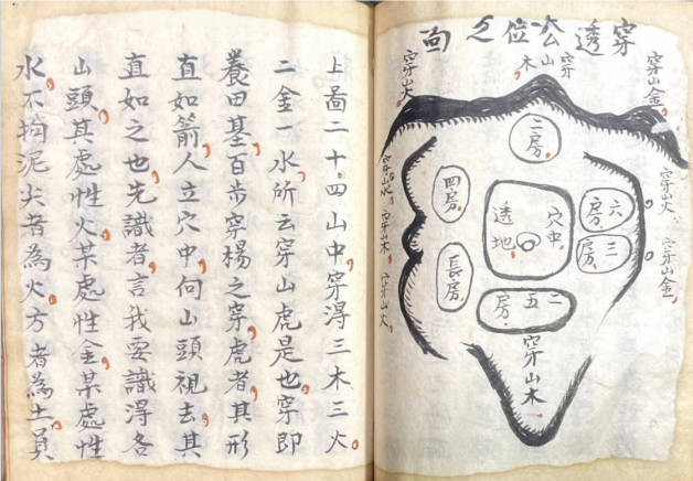 祖传地理穿山透地心得,穿透真传序,穿透真言论,精美绘图地理钳记很多幅,有很多风水宝地的具体方位等。