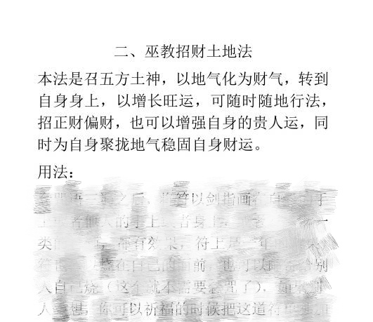 2、招财土地法:召五方土神,以地气化为财气,转到自身身上,以增长旺运,可随时随地行法,招正财偏财,也可以增强自身的贵人运,同时为自身聚拢地气稳固自身财运。无须修炼,即用即灵…..