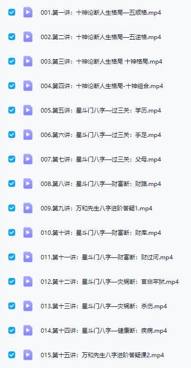 百度网盘分享:申高源万和【星斗八字传承班】视频课31集,总课时约40小时