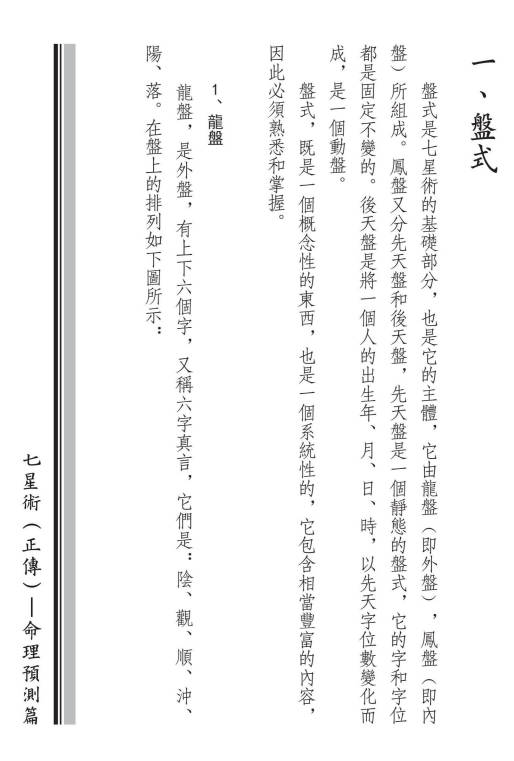 从未见文字记载。七星命理,核心为七星,七星者:即日、月、金、木、水、火,土星是也。七星命理,不象其它预测术那么文字浩繁,复杂多端。起卦后,全凭二十个字的断卦要旨和六个字的解秘真言,以及四十六个字的龙凤十二卦象,按其相互组合的“吉、合、喜、顺、平,凶、枯、落、墓、空”判断吉凶,确有神奇的妙验。