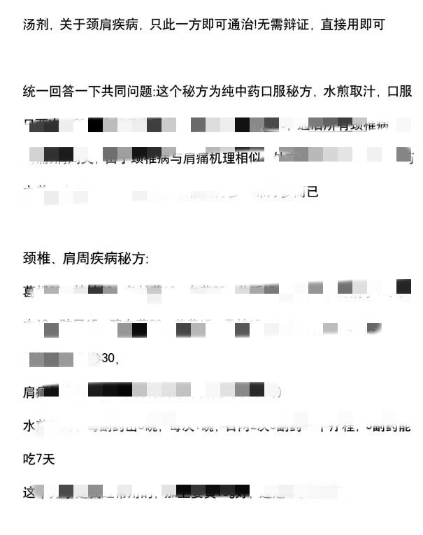 百度网盘分享:家传颈椎病、肩痛(肩周炎)秘方! 通治一切颈椎病、肩痛(肩周炎),有效率100%,口服汤剂,关于颈肩疾病,只此一方即可通治!无需辩证,直接用即可。 本方基础药物14味,包括生姜、大枣,颈椎病和肩痛(肩周炎)本方通治,只是颈椎病和肩周炎各加一味药而已,所以共计15味药! 本站为纯分享资源站点,仅提供一个观摩学习的环境,网站内所有资源仅供学习交流之用,版权均归原作者所有,本站将不对任何资源负法律责任。若无意中侵犯到您的版权利益,请来信联系我们,我们会在收到信息后会尽快给予处理!