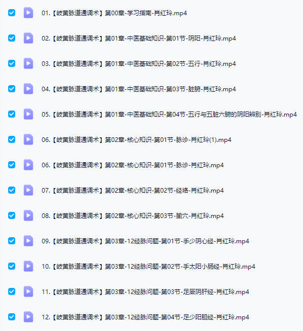 百度网盘分享:扁鹊中医-肖红玲【岐黄脉道通调术(线上课)】23集视频课