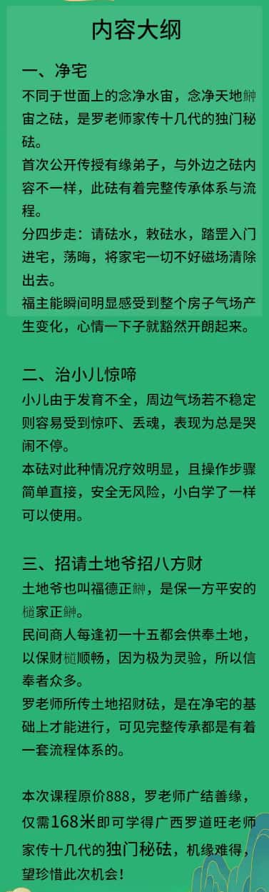 课程原价888,现本站低价分享,仅需10米即可学得广西罗道旺老师家传十几代的独门秘砝,机缘难得….
