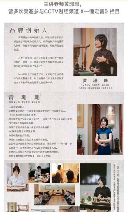 权威导师:国家香事标准制定专家、CIIT注册高级鉴香师黄珊珊亲授,十年香文化传承与国际交流经验。