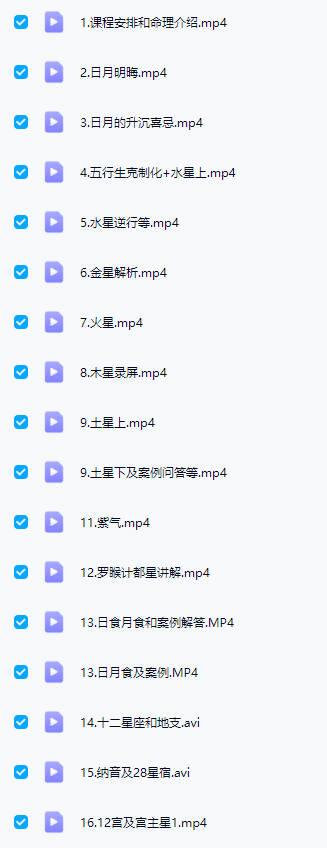 百度网盘分享:黄道制《大七政四余课程果老星宗》视频课38集+音频课44集+完整讲义