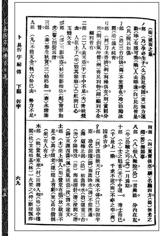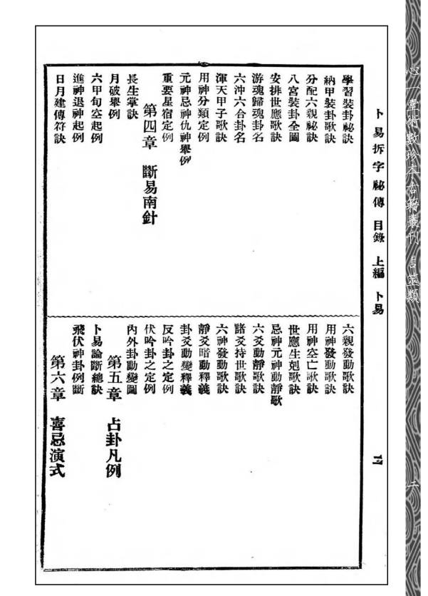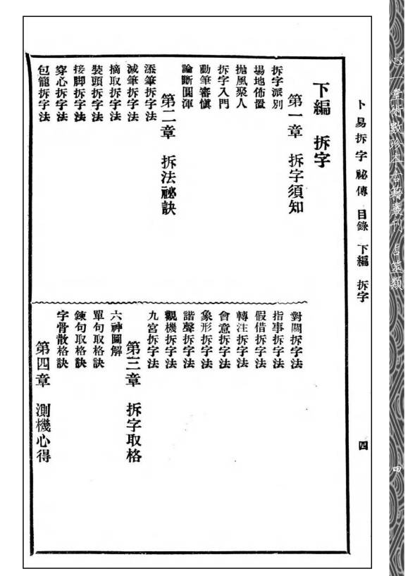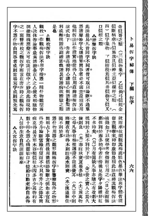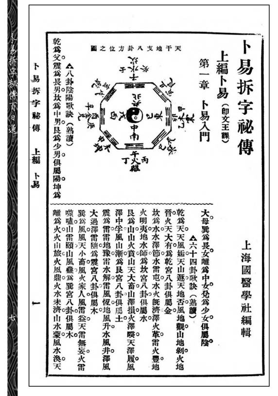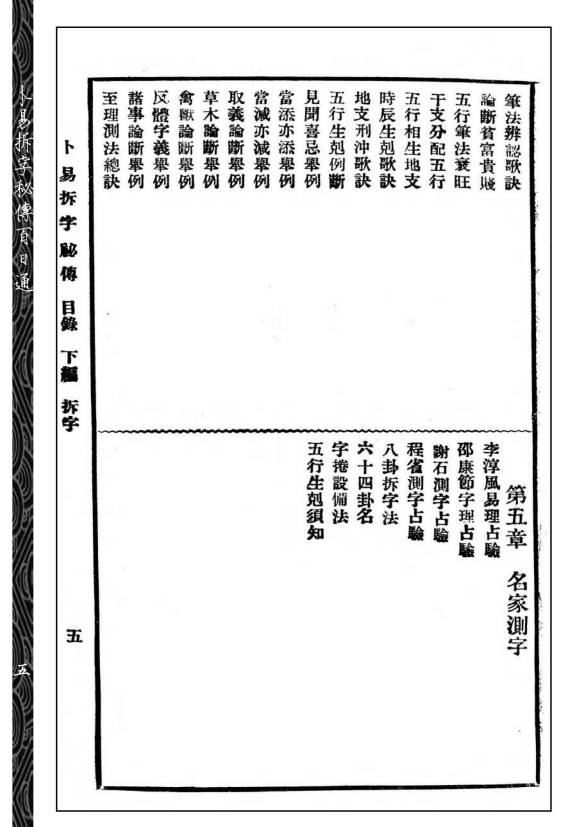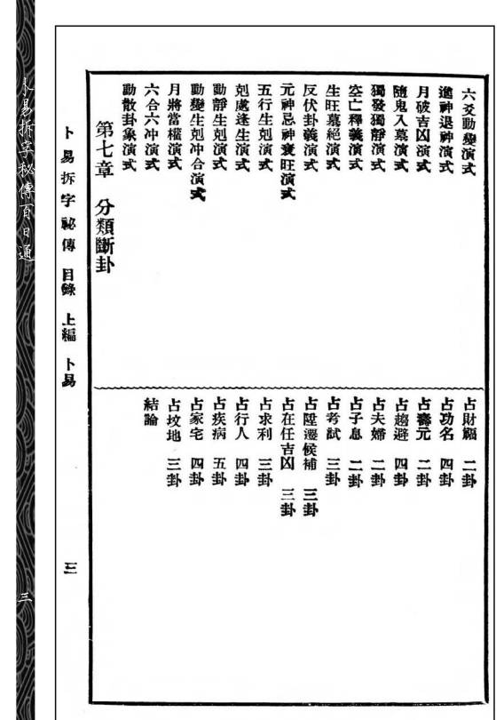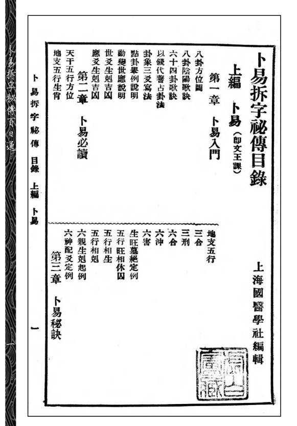 内容涵盖卜易入门、卦象解析、拆字方法及应用等。