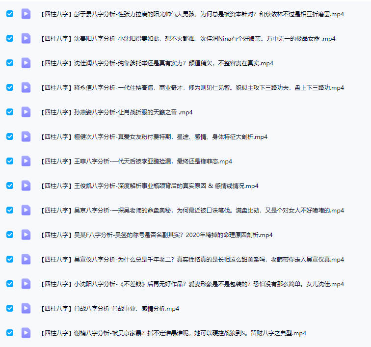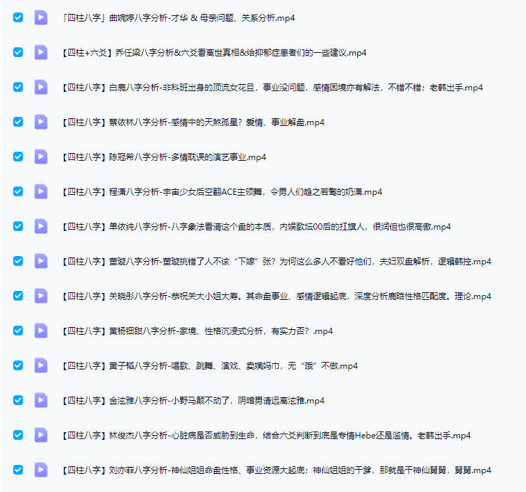 百度网盘分享:老韩《明星八字案例分析》45集视频