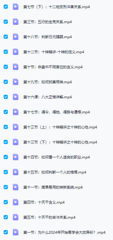 百度网盘分享:赵元亚:2024年《四柱预测学综合班》视频课30集