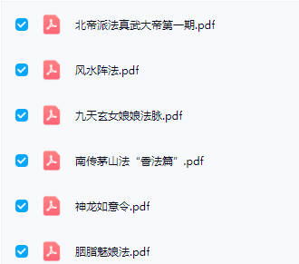 百度网盘分享:青月《六个秘法》6本 PDF电子法本 【课程目录】 九天玄女娘娘法脉.pdf 北帝派法真武大帝第一期.pdf 南传茅山法“香法篇”.pdf 神龙如意令.pdf 胭脂魅娘法.pdf 风水阵法.pdf 部分页面截图 部分页面截图 部分页面截图 部分页面截图 本站为纯分享资源站点,仅提供一个观摩学习的环境,网站内所有资源仅供学习交流之用,版权均归原作者所有,本站将不对任何资源负法律责任。若无意中侵犯到您的版权利益,请来信联系我们,我们会在收到信息后会尽快给予处理!