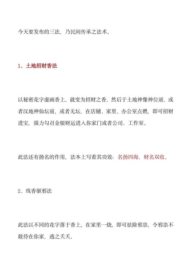 百度网盘分享:莲花藏倾莲池《土地神招财香、和合香》pdf电子文档 内容: 1、土地招财香法 2、线香驱邪法 3、线香和合法 部分页面截图 部分页面截图 部分页面截图 部分页面截图 本站为纯分享资源站点,仅提供一个观摩学习的环境,网站内所有资源仅供学习交流之用,版权均归原作者所有,本站将不对任何资源负法律责任。若无意中侵犯到您的版权利益,请来信联系我们,我们会在收到信息后会尽快给予处理!