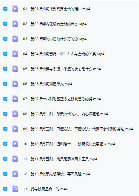 百度网盘分享:【金钱吸引】金钱正念 · 吸引财富的原动力13集视频课