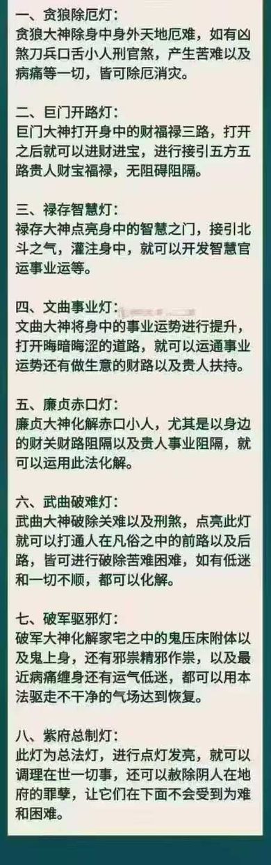 武曲大神破除关难以及刑煞,点亮此灯就可以打通人在凡俗之中的前路以及后路,皆可进行破除苦难困难,如有低迷和一切不顺,都可以化解。