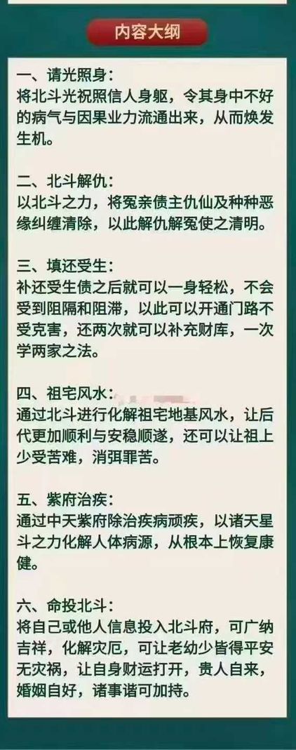 以北斗之力,将冤亲债主仇仙及种种恶缘纠缠清除,以此解仇解冤使之清明。